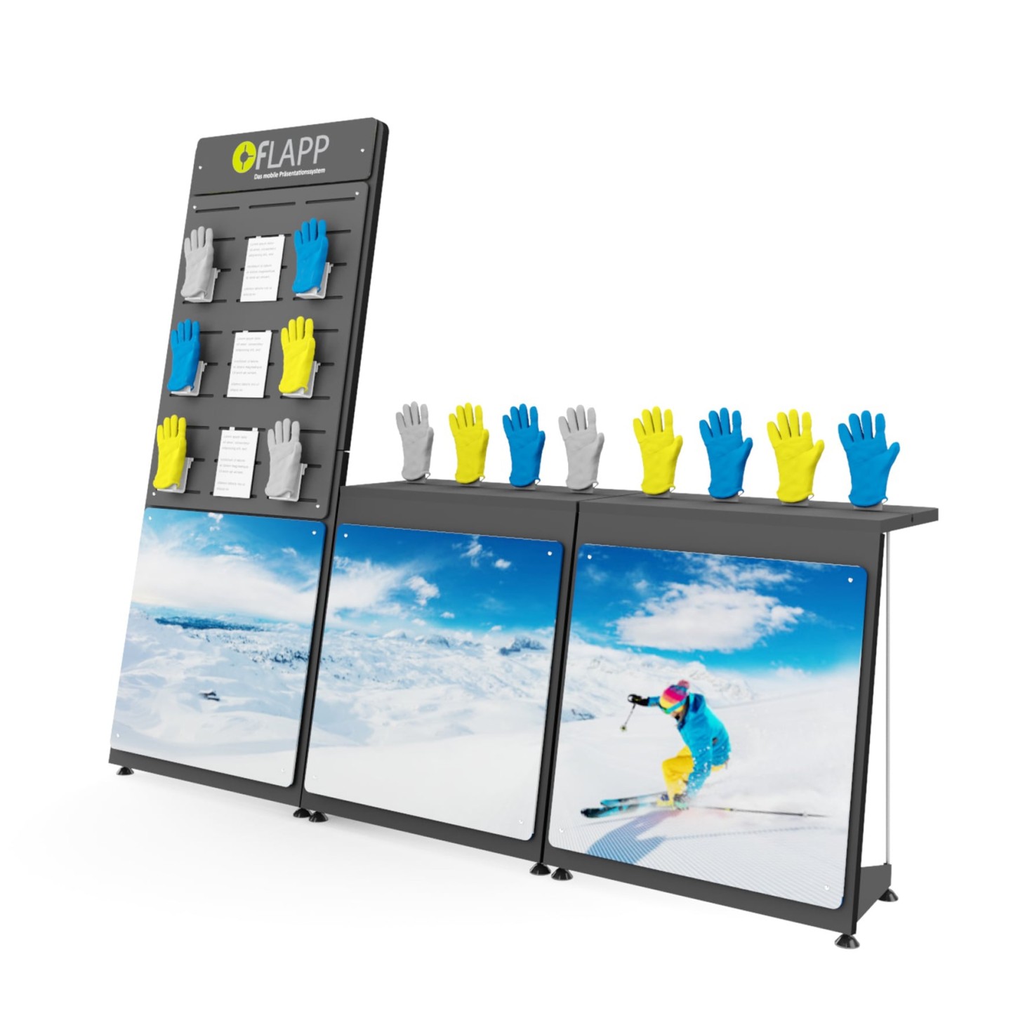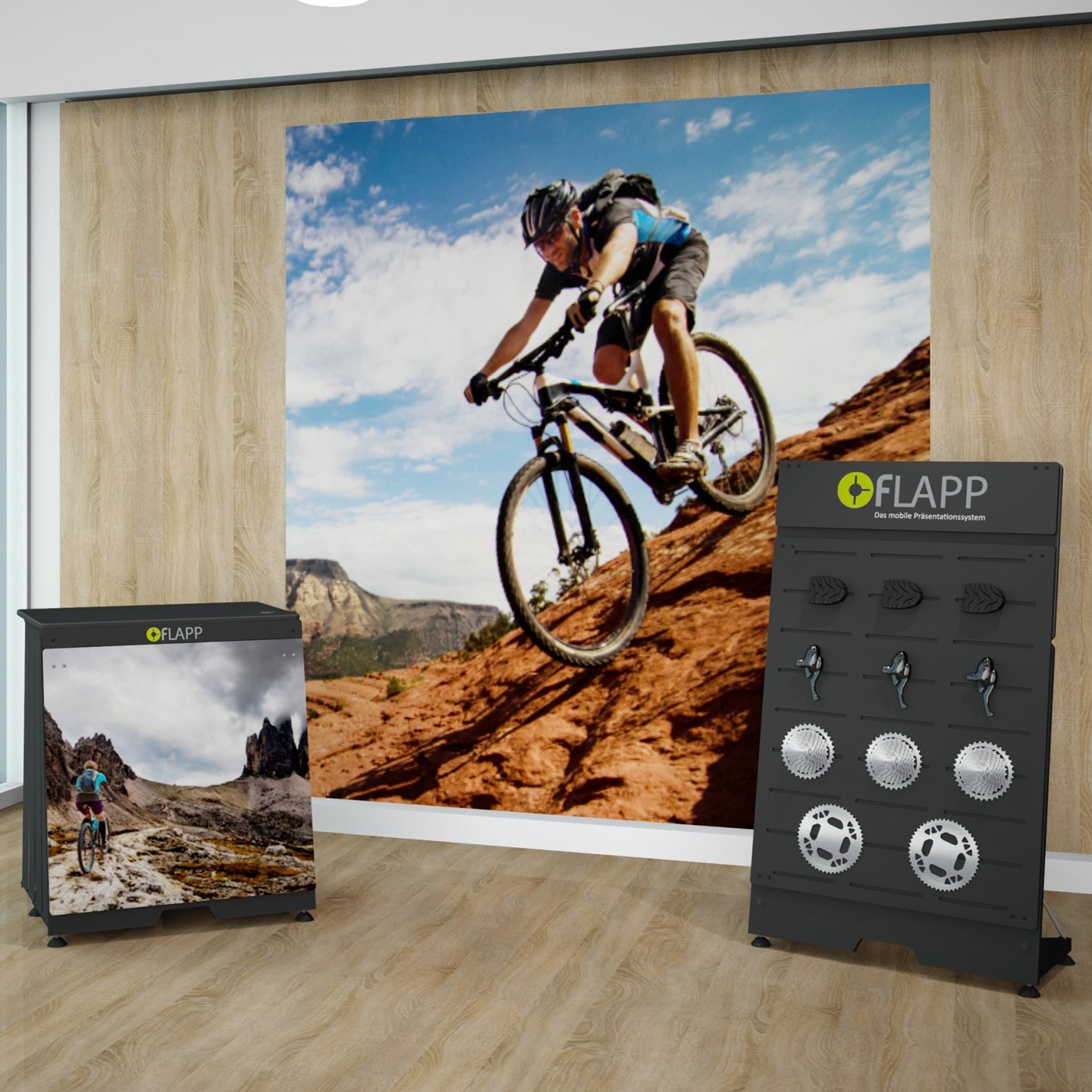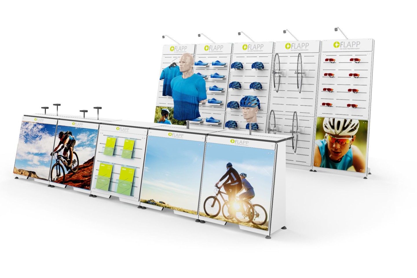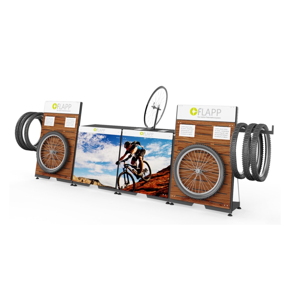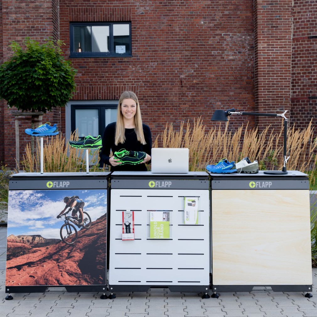 Unite FLAPP 50 e FLAPP per realizzare disposizioni espositive perfettamente adattate e di grande effetto.