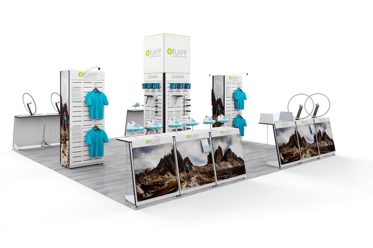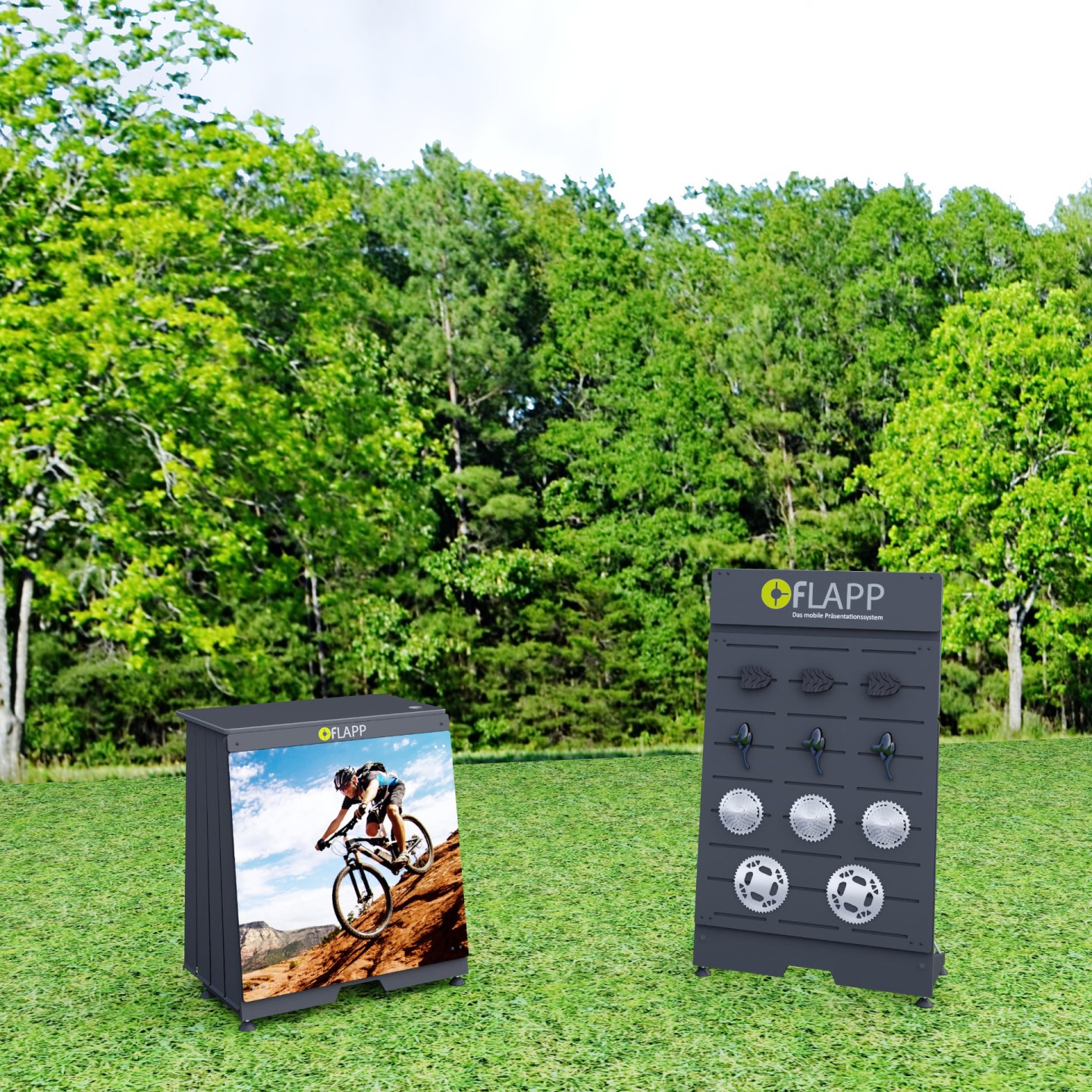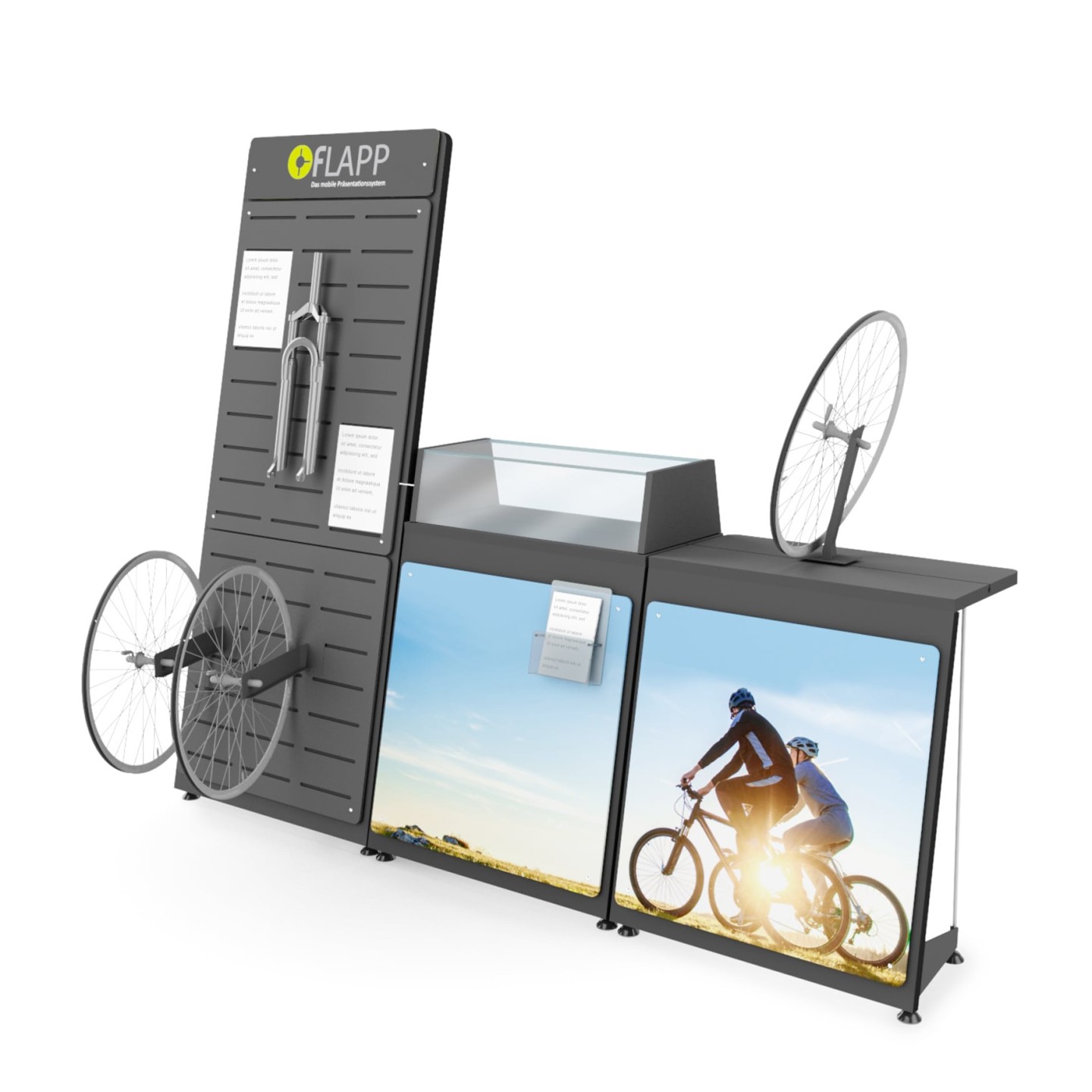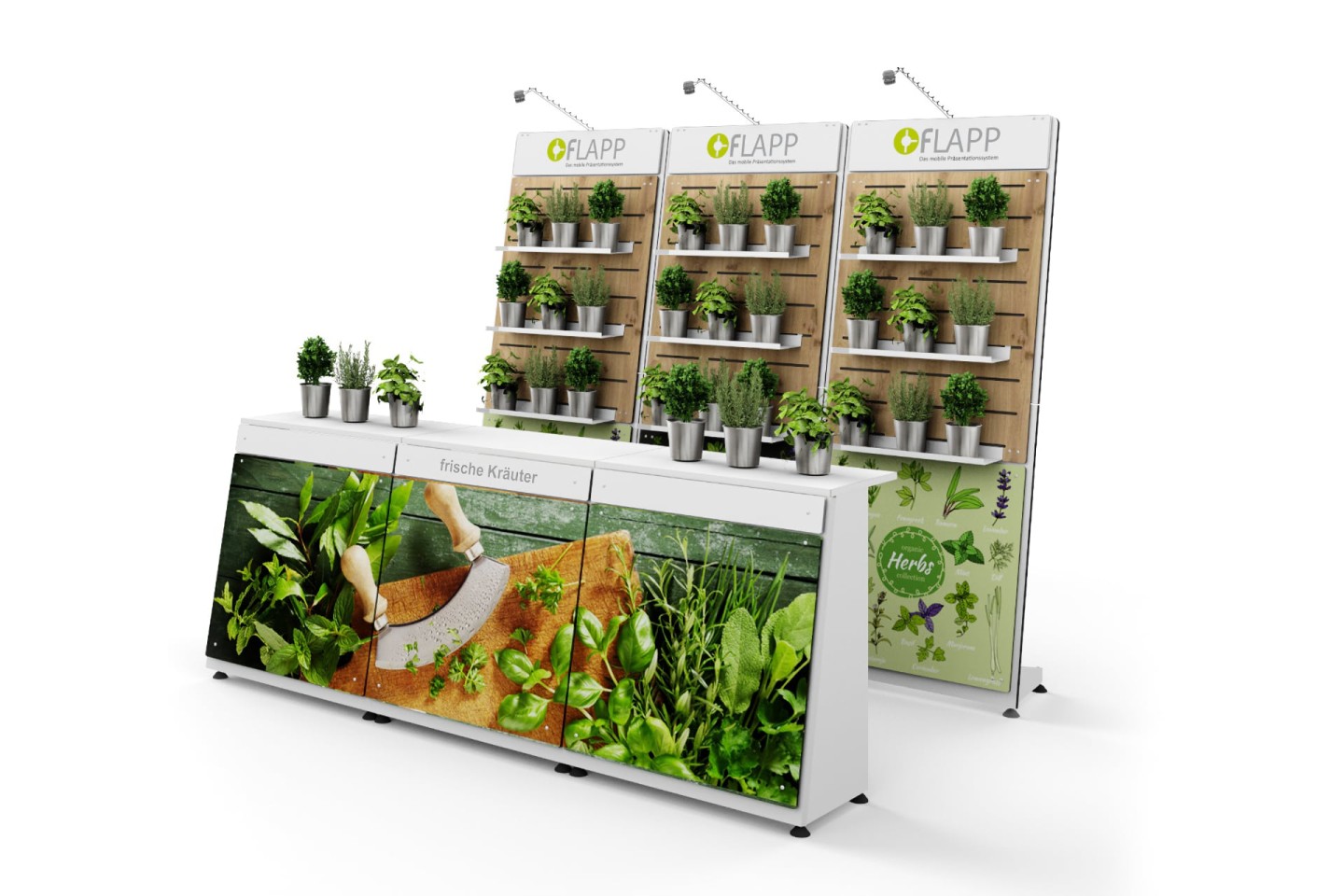 Unite FLAPP 50 e FLAPP per realizzare disposizioni espositive perfettamente adattate e di grande effetto.