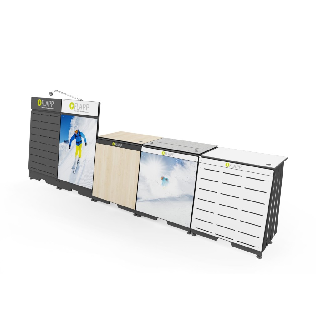 FLAPP 50 è un sistema modulare che in un attimo può essere adattato a dimensioni diverse e ampliato in modo versatile.
