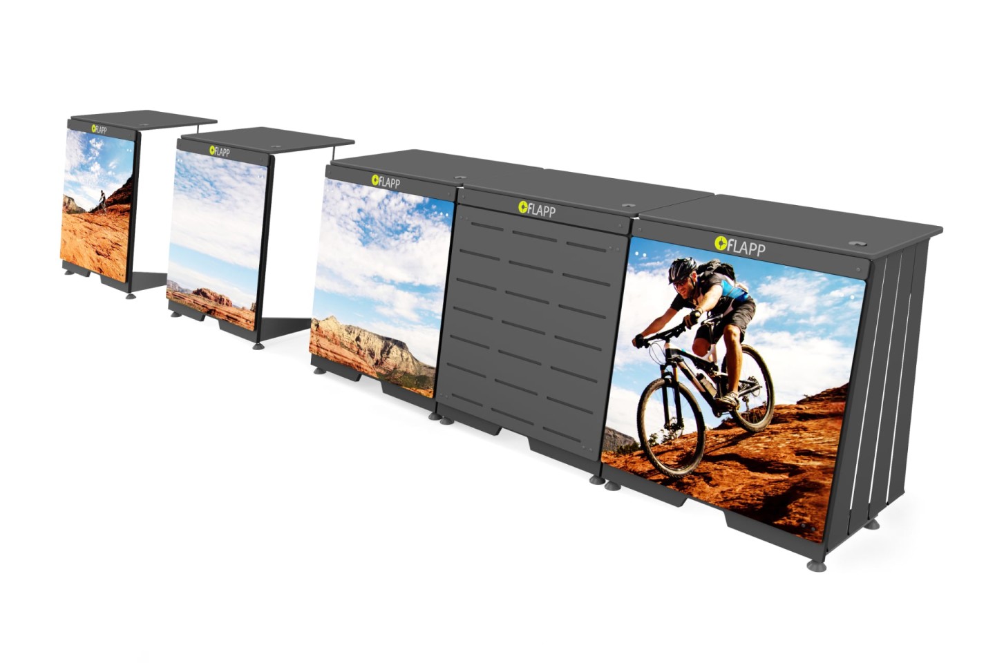 All’interno o all’esterno, da solo o combinato: FLAPP può essere sempre configurato come e dove le vostre esigenze lo richiedono.