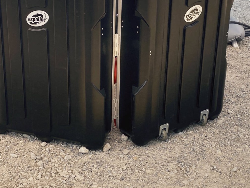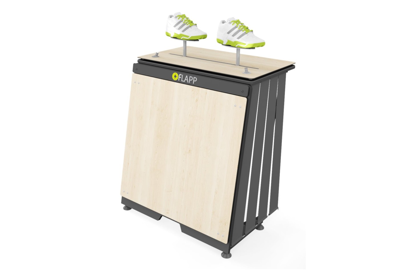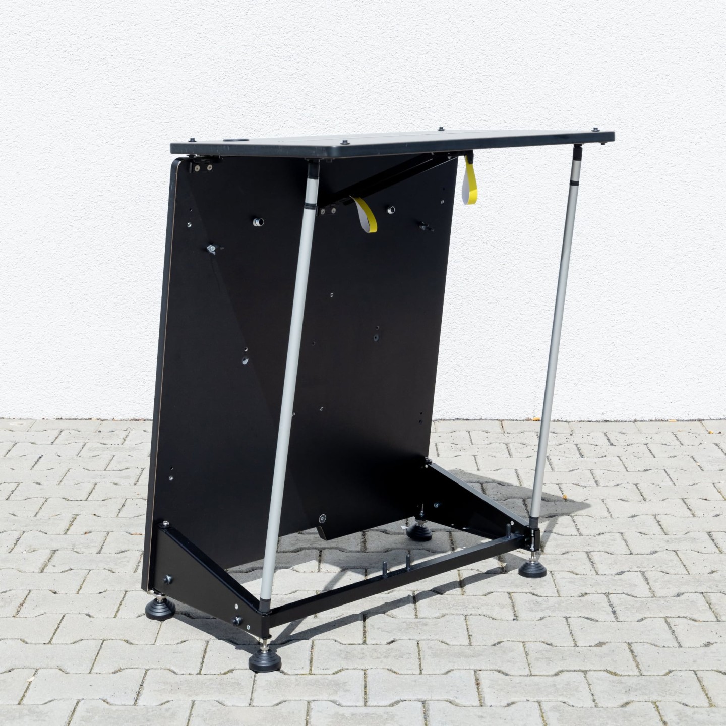 A differenza delle teche per eventi tradizionali, FLAPP 50 è dotato di robusti piedini regolabili per mantenere una distanza sufficiente dal pavimento.