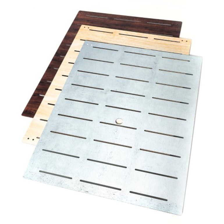 Pannelli di fissaggio opzionali per parete slatwall consentono di utilizzare il lato tematico frontale.