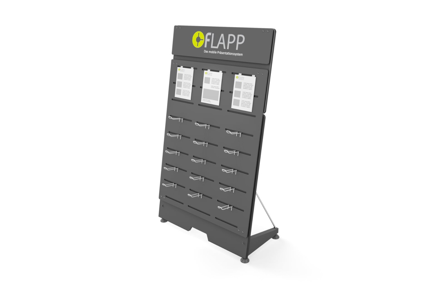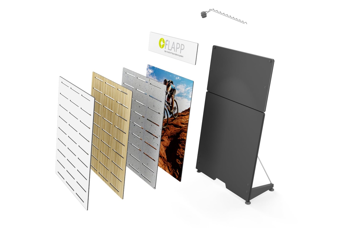 La superficie della parete FLAPP può essere completamente adattata e configurata in base alle vostre esigenze specifiche, e soprattutto modificata rapidamente in qualsiasi momento.