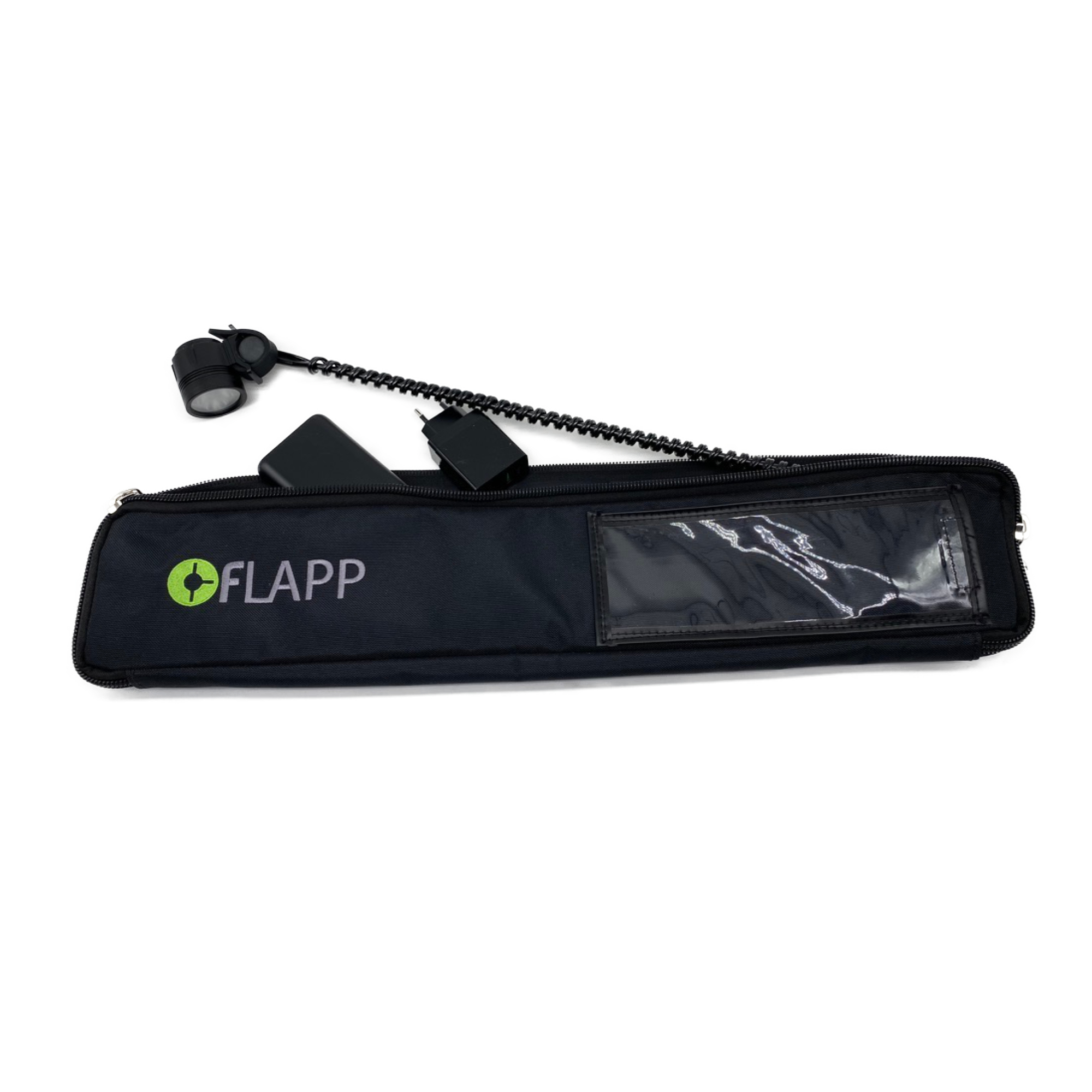 È possibile trasportarvi una lampada FLAPP con batteria, cavi e alimentatore.