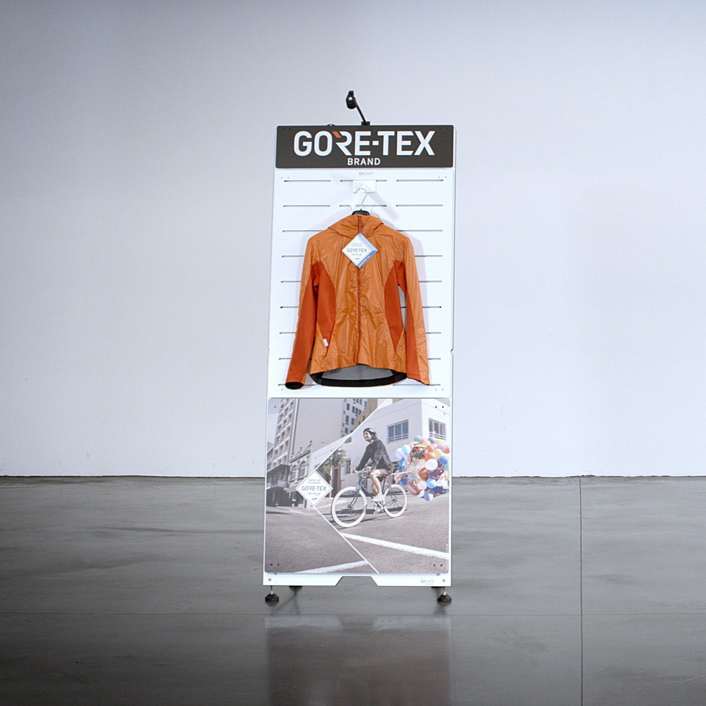 • Per presentare capi d’abbigliamento pesanti consigliamo di dotare FLAPP con un pannello di fissaggio nella variante heavy duty.