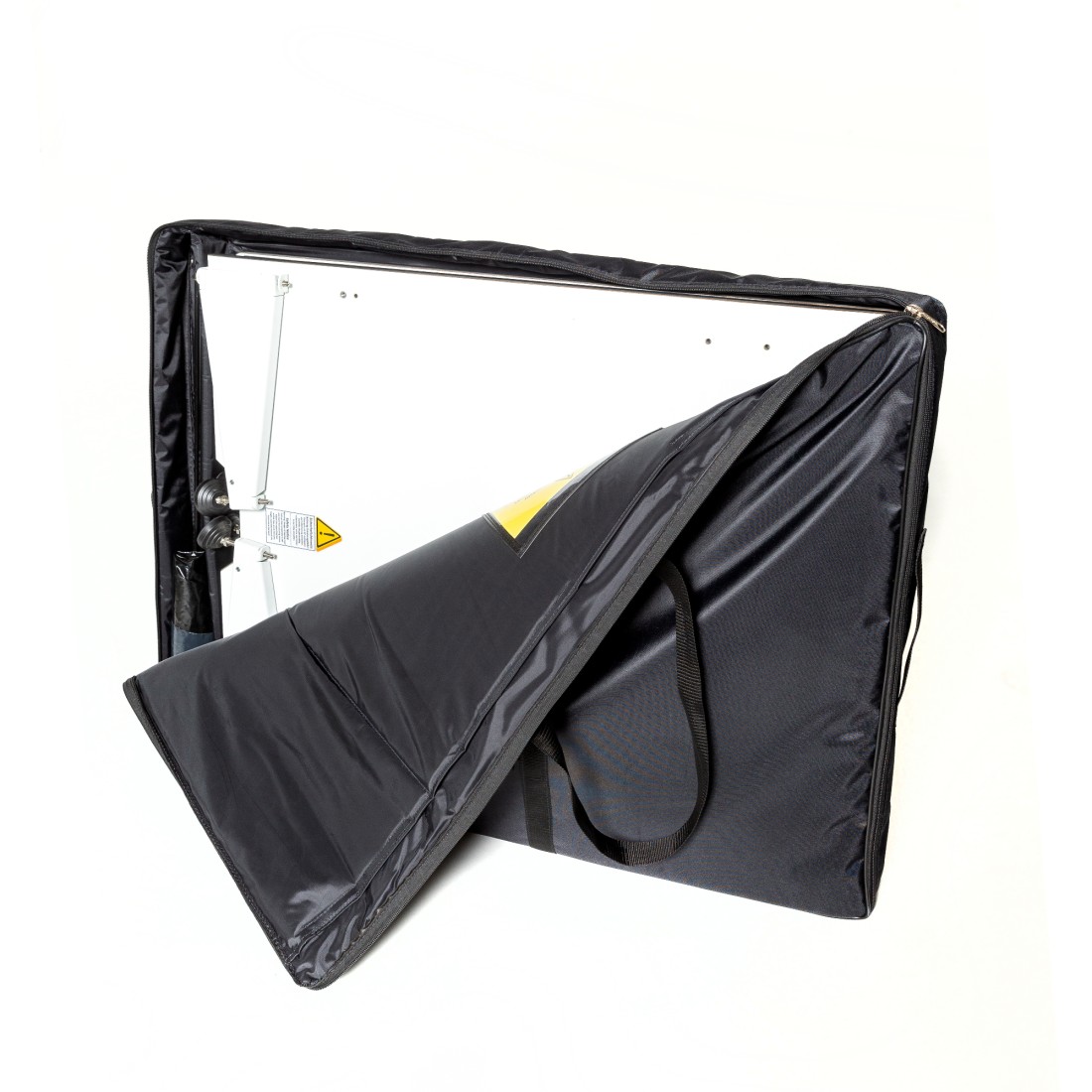 Borsa di pregio stabile in nylon nero completamente imbottita con scomparto interno. Con tre tasche interne per il trasporto di pannello di fissaggio, grafico board e brand board.
