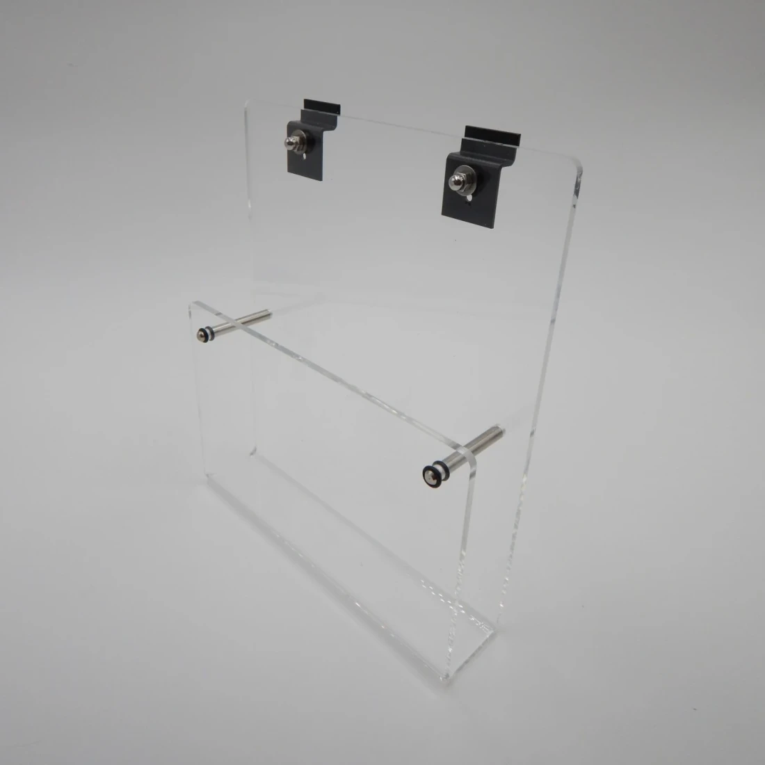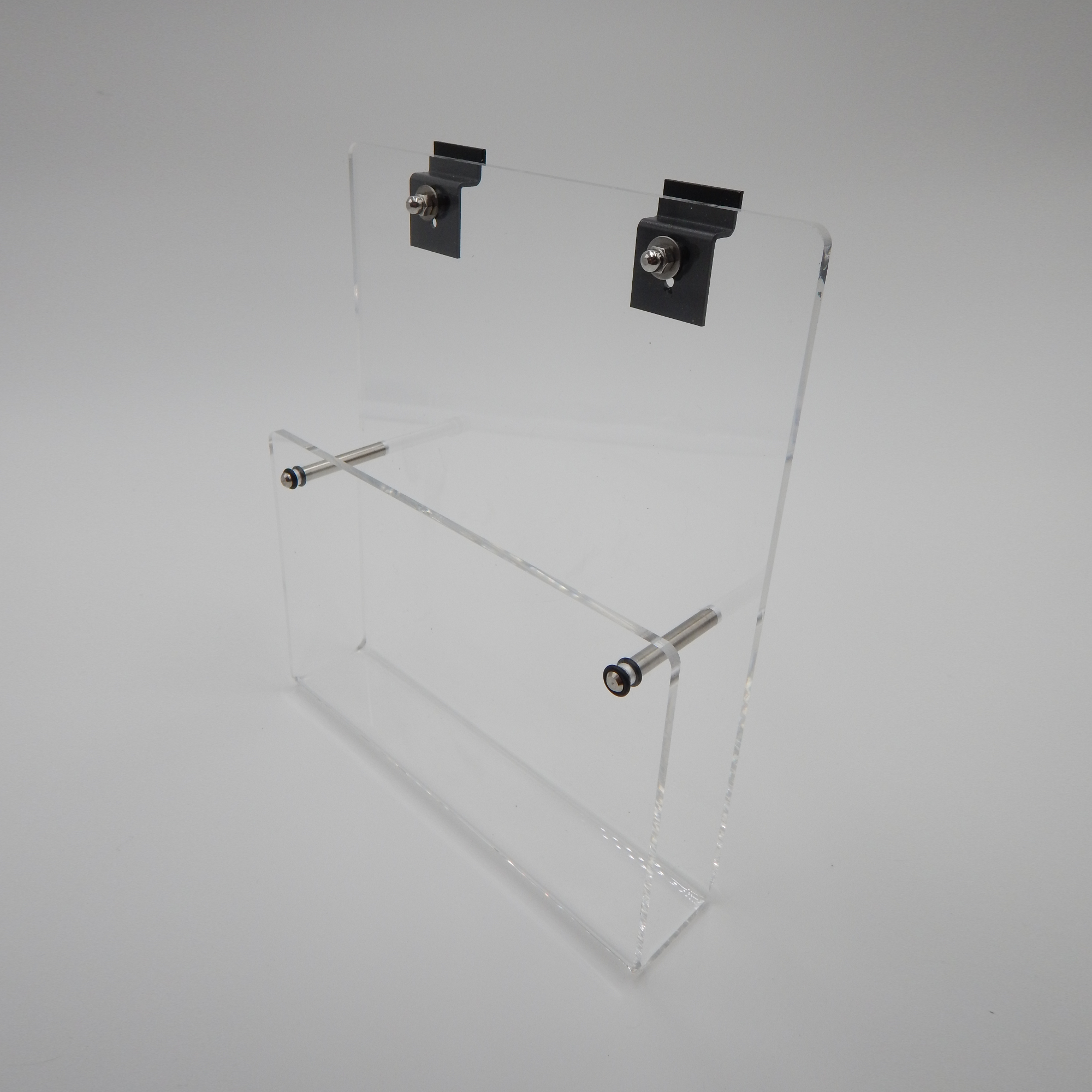 Disponibili in diverse misure, agganciabili alle pareti Slatwall o Euroloch.
